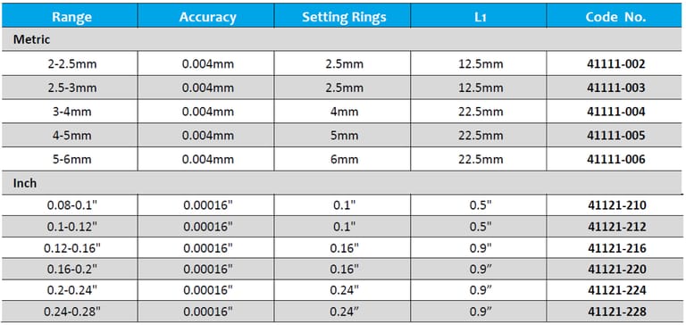 Resolution: Metric: 0.001mm / Inch: 0.00005"