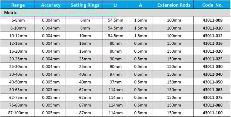 Resolution: Metric: 0.001mm / Inch: 0.0001"